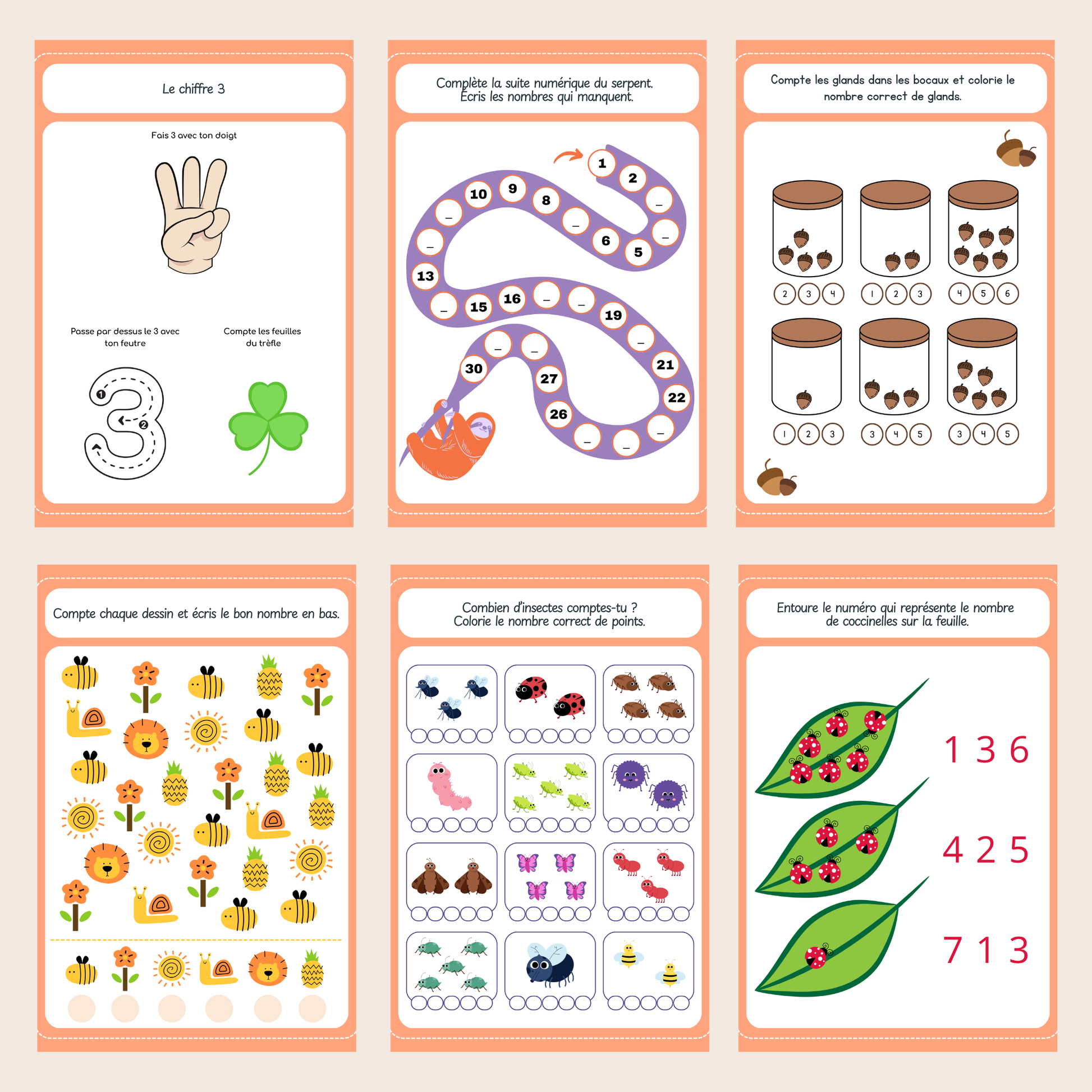 Un cahier réutilisable prêt à l’emploi pour apprendre les chiffres en s'amusant. Pensé pour les enfants de 3 à 6 ans, il développe la motricité fine, les premiers calcules et la logique.